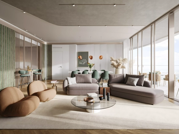 - On the 40th floor, residents can enjoy a series of high-end recreational spaces, including an infinity pool with panoramic sea views, outdoor terraces, and lounges.