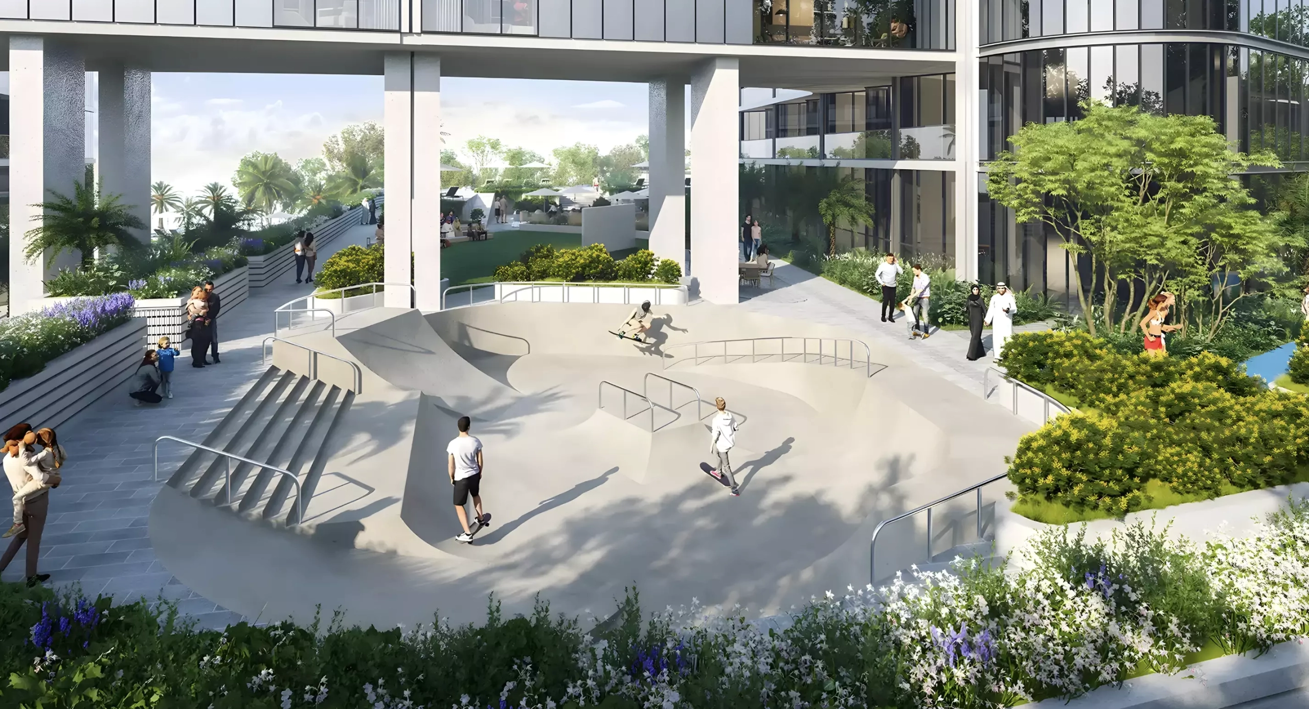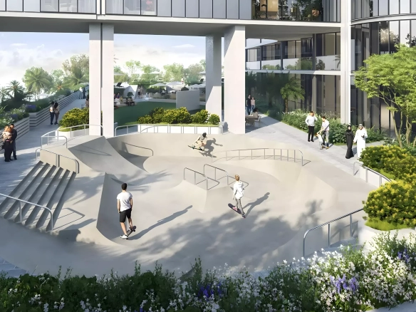- Elevated podium and rooftop parks, landscaped gardens and wellness zones.